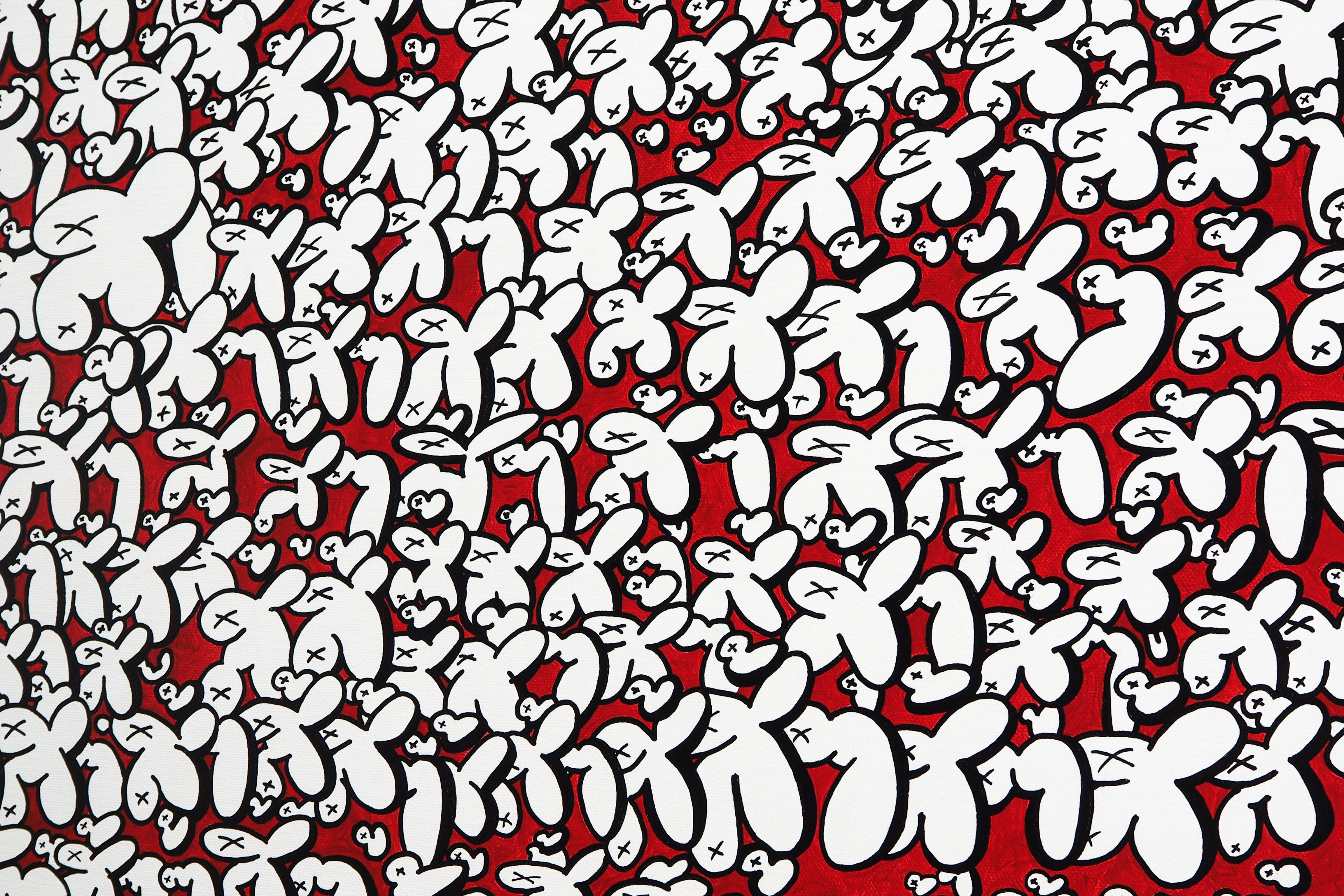 For example, in the Bubbly Feelings, the text is inflated. It is like adding energy (inflated with air) into the letter, which causes a feeling of euphoria. At first, the word Su Su may not be visible. When looking at the overall picture, you may see a vision – depending on the imagination of each person. Some people see it as popcorn. Some people see a field of flowers. Some see rabbits. But upon careful inspection, the words will appear and give a positive feeling. The artist intends to develop this series further due to the fact that everybody needs encouragement. Thanathorn is enthusiastic about the notion that small words possess great power - Small but Mighty