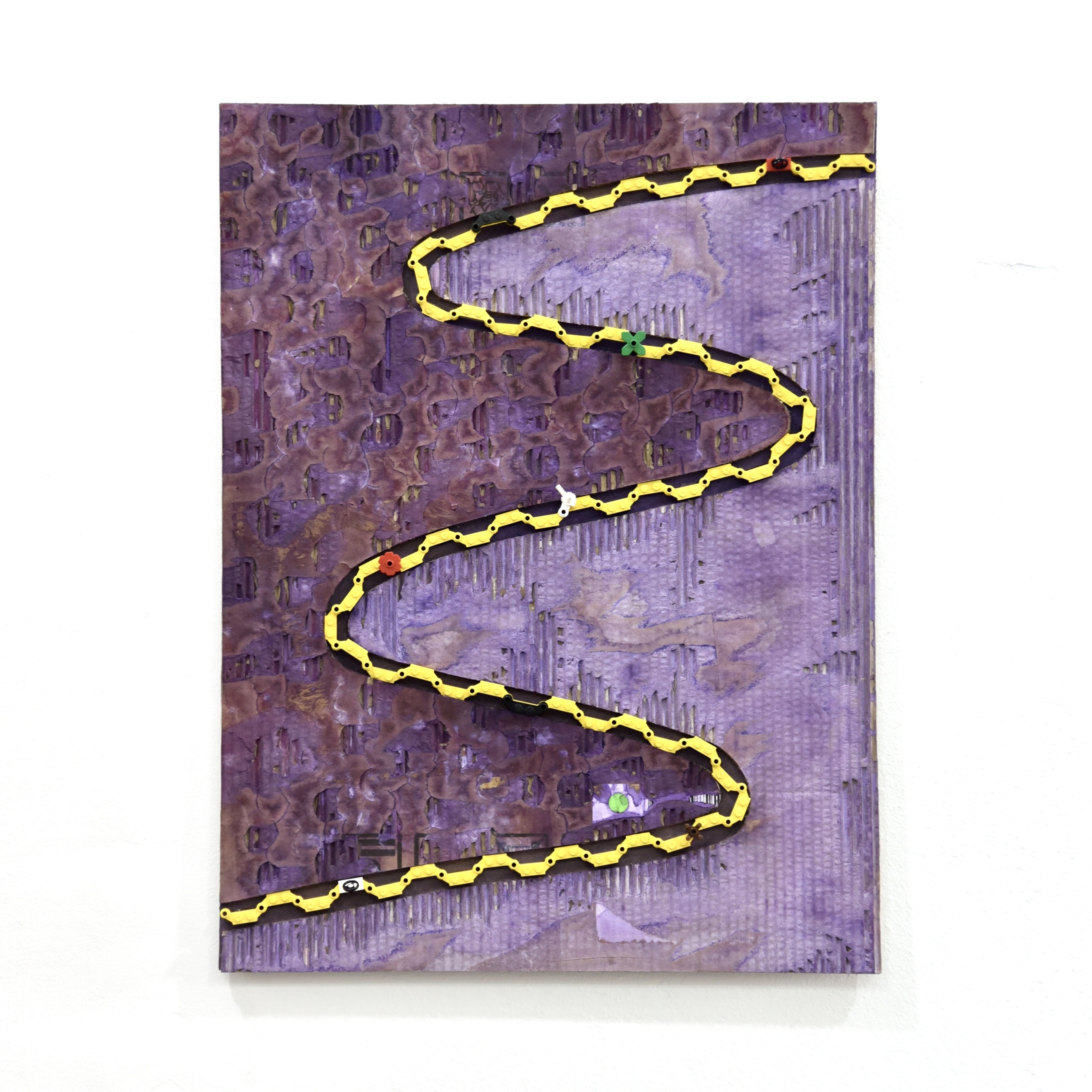 In my previous works, I applied the technique of weaving paper on hanji (traditional Korean paper) and incorporated abstract images using Chinese ink to explore my own identity while focusing on the fusion of Eastern and Western aesthetics. Additionally, I poured ink onto cardboard surfaces, collaged geometric patterns, and employed various materials and techniques within a single frame to express the ambiguous and uncomfortable emotions experienced as an immigrant dwelling within an unfamiliar culture.