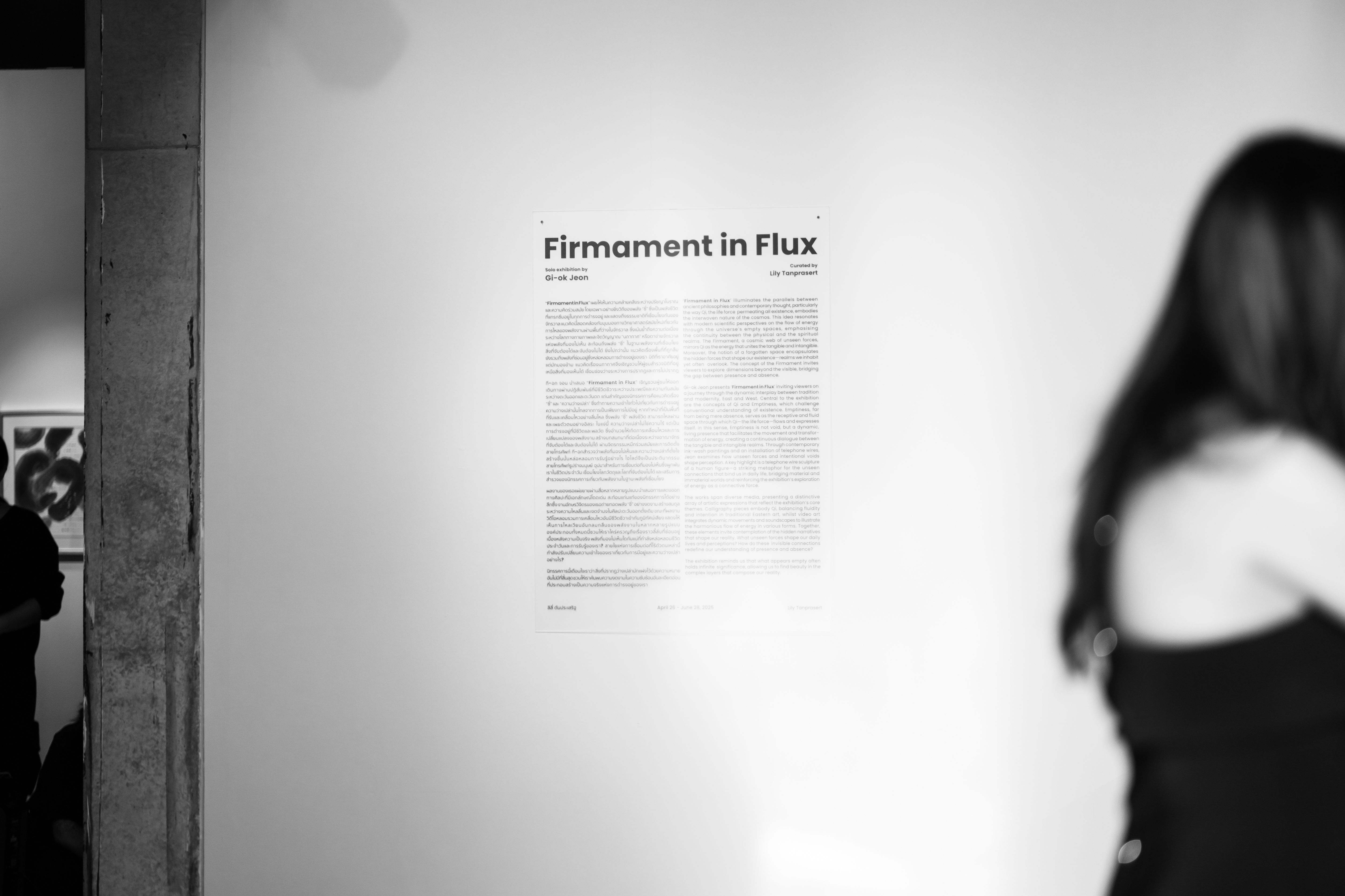 “Firmament in Flux” คือนิทรรศการเดี่ยวครั้งใหม่ของศิลปินชาวเกาหลีใต้ กี-อก จอน (Gi-ok Jeon) โดยมี ลิลี่ ตันประเสริฐ เป็นคิวเรเตอร์ ที่หยิบจับพลังที่มองไม่เห็นนี้มาเล่าผ่านงานศิลปะหลากหลายประเภท