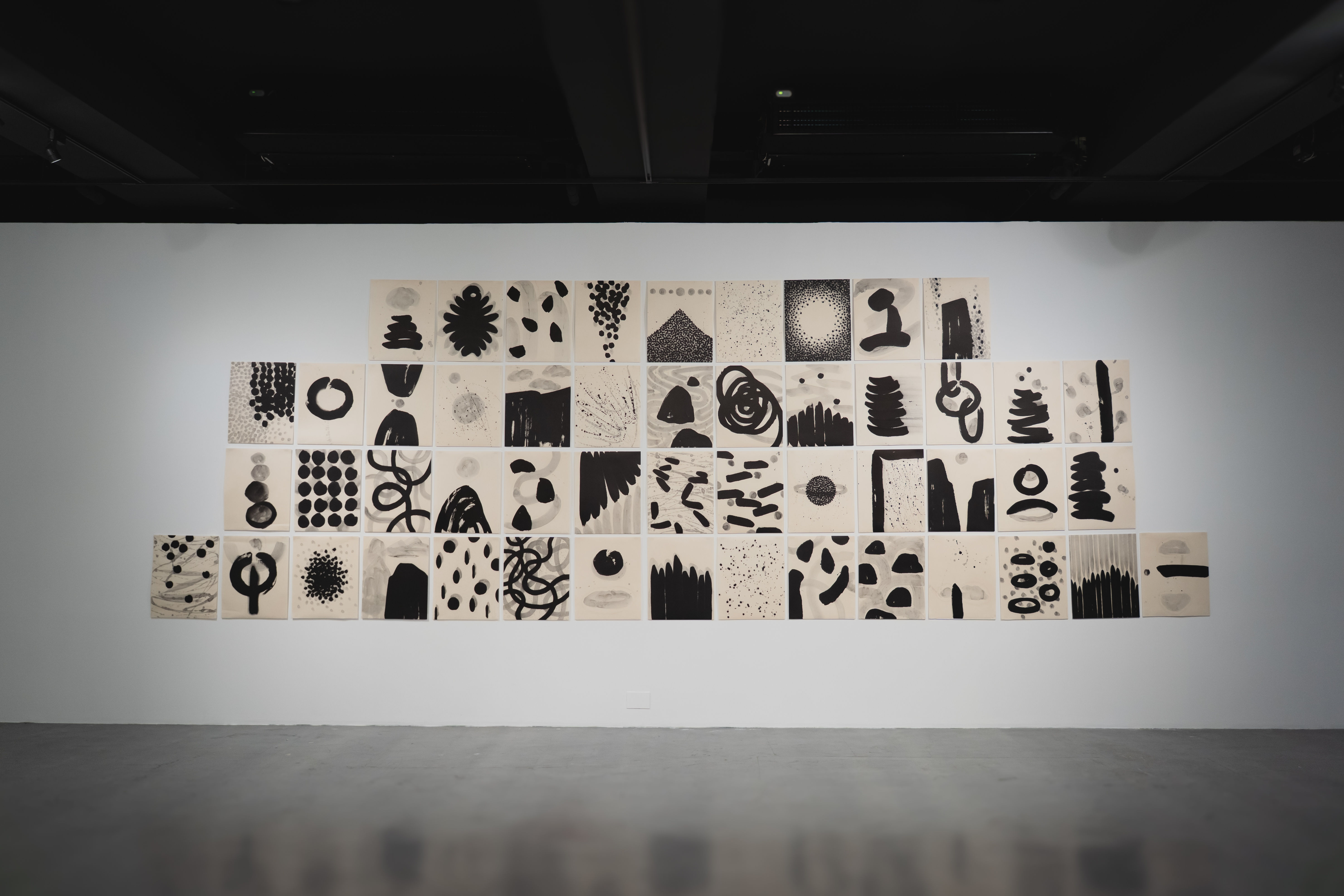 หากสังเกตจะพบว่า ภาพจากปลายพู่กันจีนทั้ง 50 ชิ้น เมื่อมารวมกันจะเห็นถึงความแตกต่างในแต่ละชิ้น เพราะมีลายเส้นไม่เหมือนกัน ซึ่งสิ่งที่ทั้งคู่อยากสื่อสาร ไม่ใช่การชวนคนดูหาว่าภาพนั้นคืออะไร แต่ยังมีบางสิ่งที่ซ่อนอยู่นั่นคือ “พื้นหลังที่ว่างเปล่า”